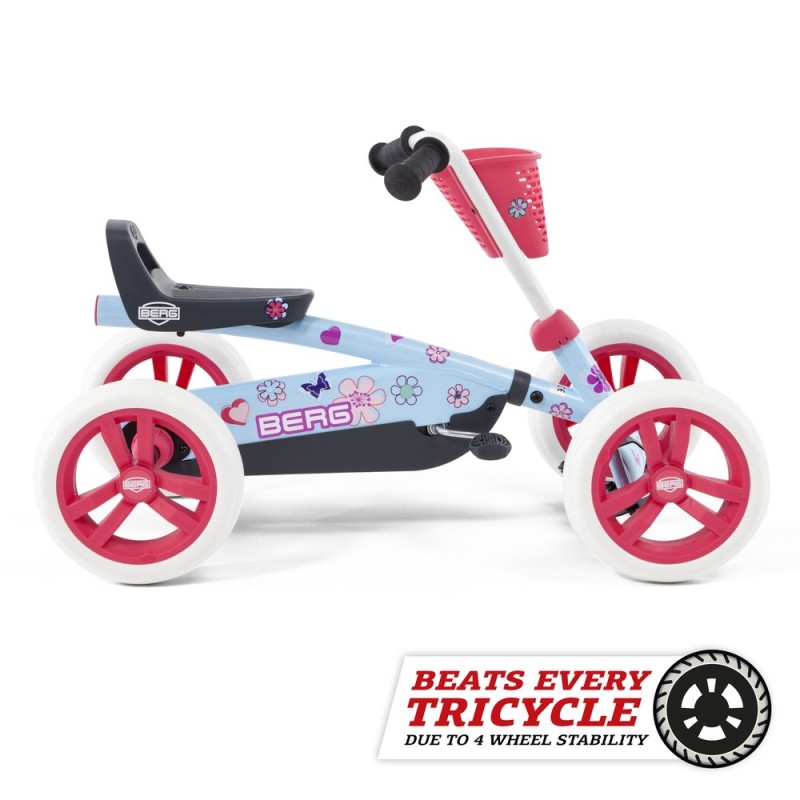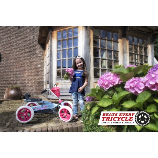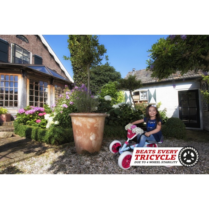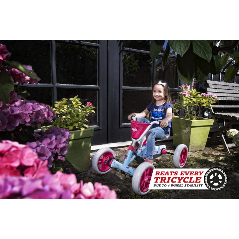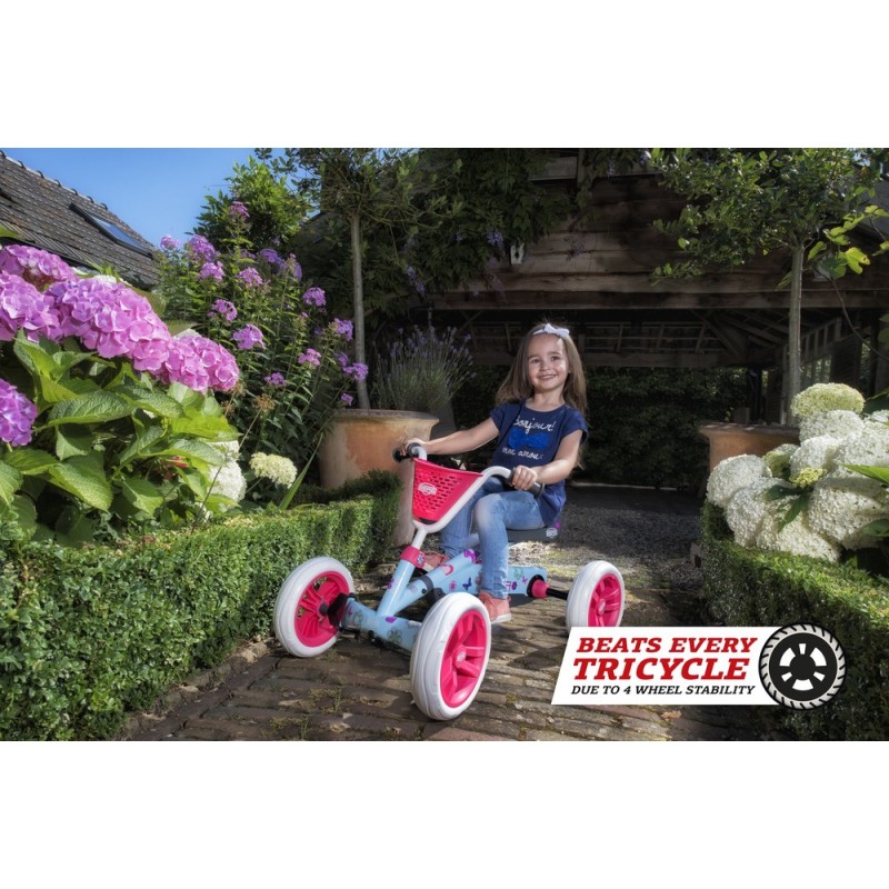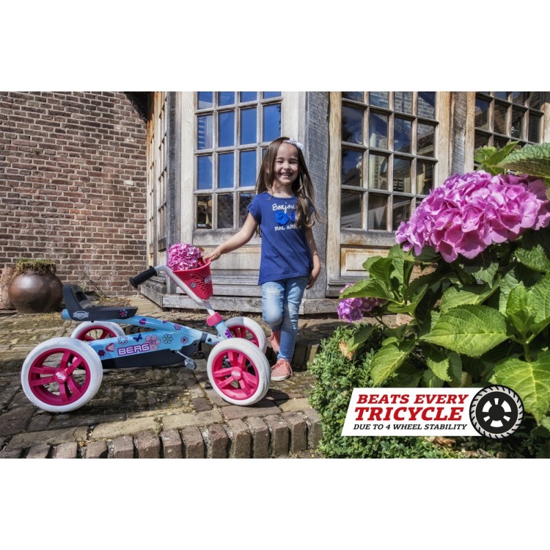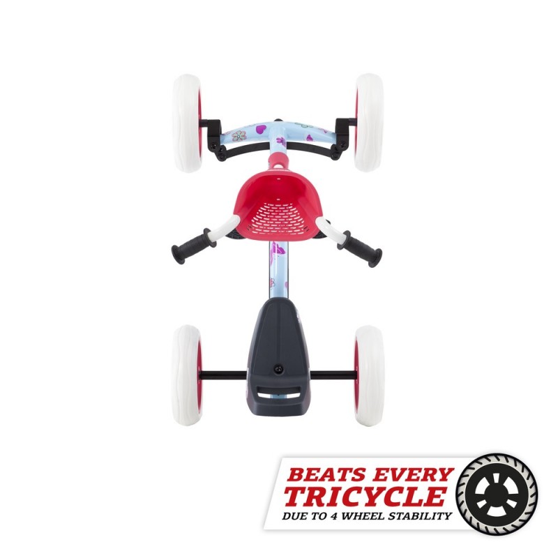 Da der Buzzy besonders stabil ist, bleibt er immer sicher aufrecht stehen, auch bei besonders aktiven Kindern, bei Hindernissen und kleinen Unebenheiten. Dies ist bei vielen 2-in-1-Dreirädern nicht der Fall, die wegen der drei Räder deutlich weniger stabil sind. Ist das Kinde müde und möchte geschoben werden oder möchte es lieber wieder spielen? Im Handumdrehen machst du aus dem Buzzy-Schubauto einen Pedal-Gokart und umgekehrt.