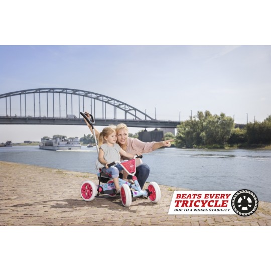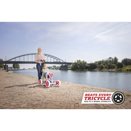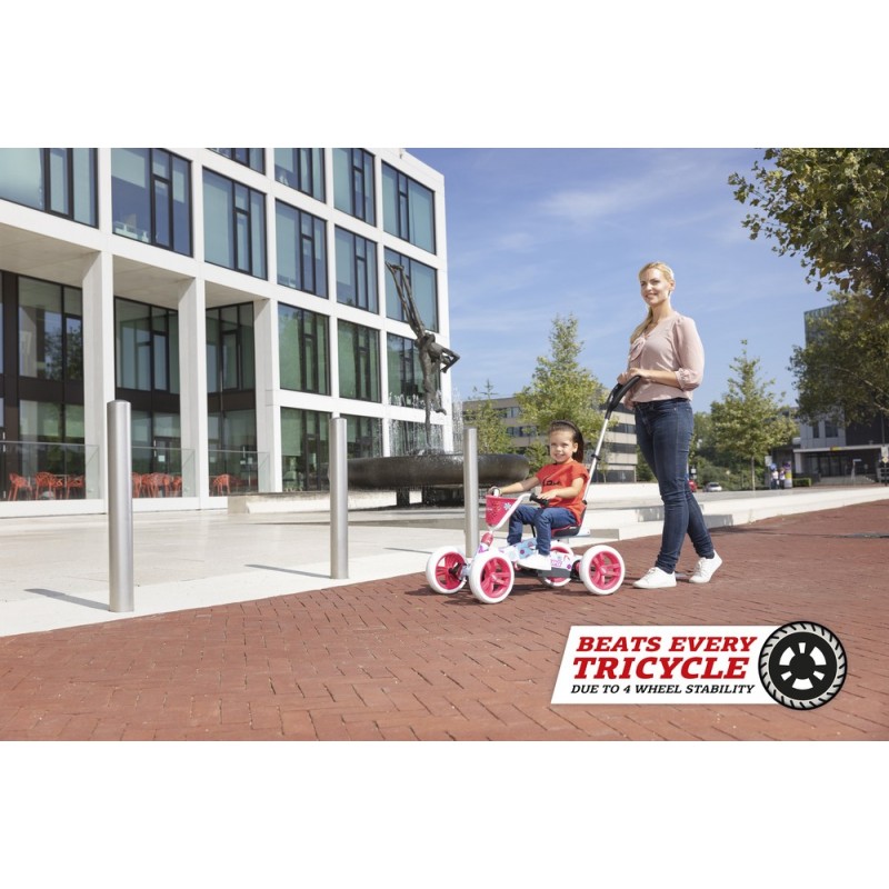 Dieser stabile Pedal-Gokart kann auch als Schubauto verwendet werden, mit dem du mit deinem Kind einfach und sicher unterwegs bist. Mit Hilfe der Schubstange behältst du die Kontrolle über Pedal-Gokart und Kind.