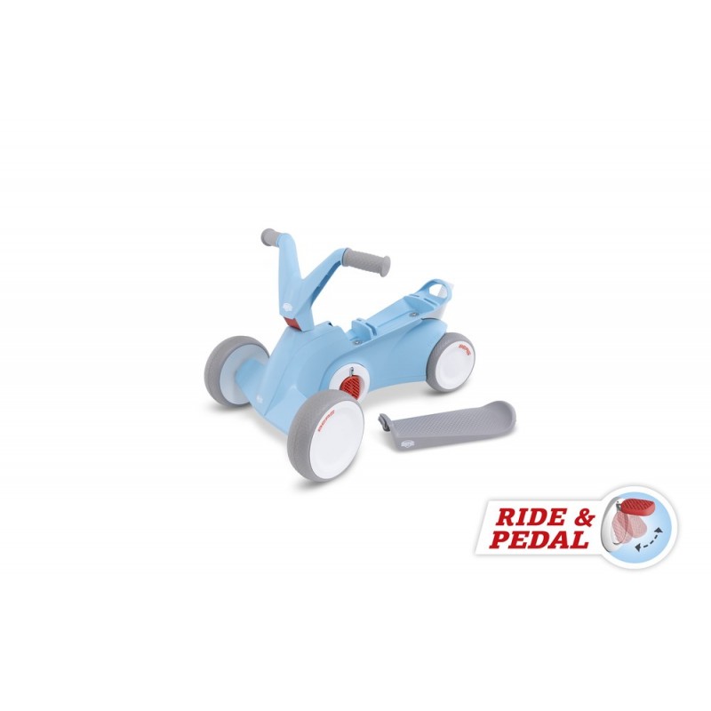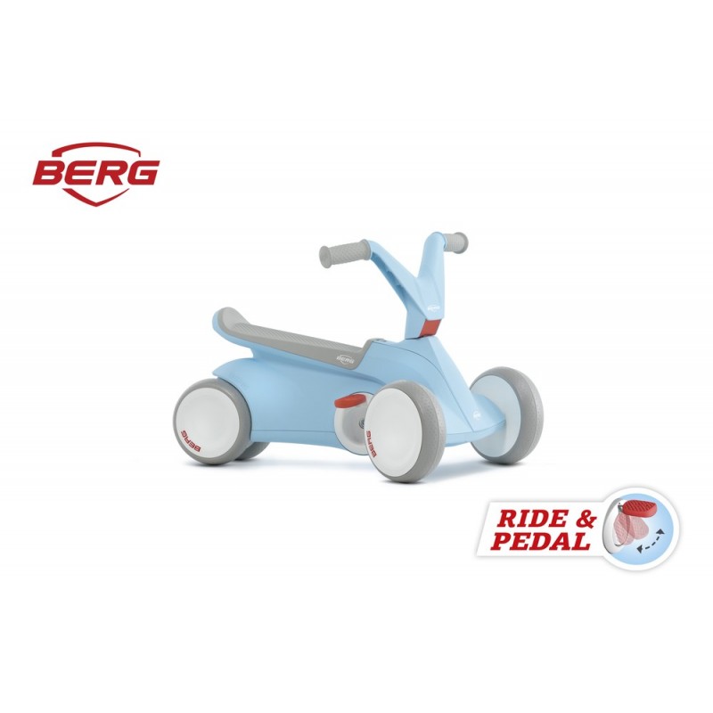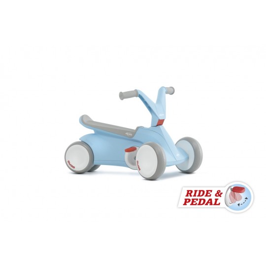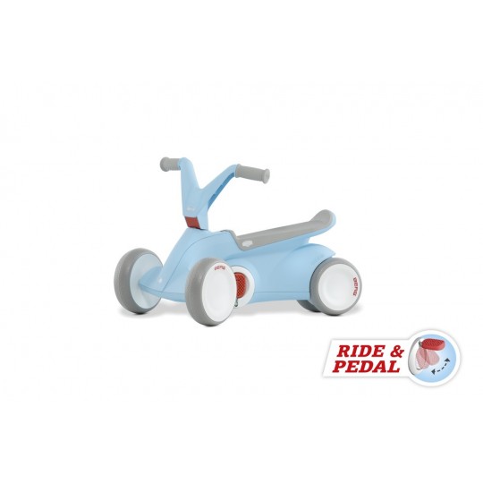 Der BERG GO² ist unser kleinster Pedal-Gokart, geeignet für Kinder von 10 bis 30 Monaten. Dieser kleine Pedal-Gokart ist aber nicht zu unterschätzen. Darauf lernt das Kind nämlich schneller, Roller zu fahren und in die Pedale zu treten! Zwei in einem also! Am Anfang können die Pedale eingeklappt bleiben, damit das Kind den Pedal-Gokart wie einen Roller benutzen kann.